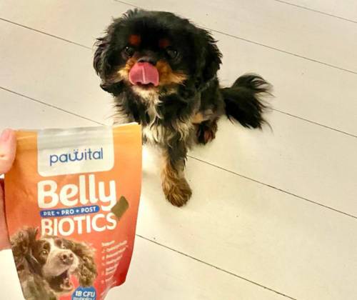 Belly Biotics is a conveniently small treat you can give to your dog multiple times through the day as a reward.