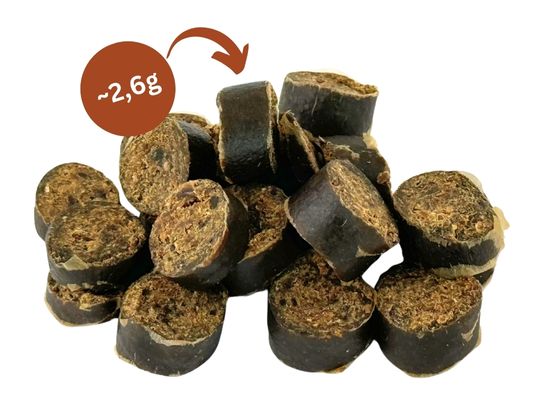 Boost your dog’s coat & skin health with this all-natural beef-based treat loaded with biotin, hyaluronic acid, postbiotics, turmeric and other powerful natural ingredients.