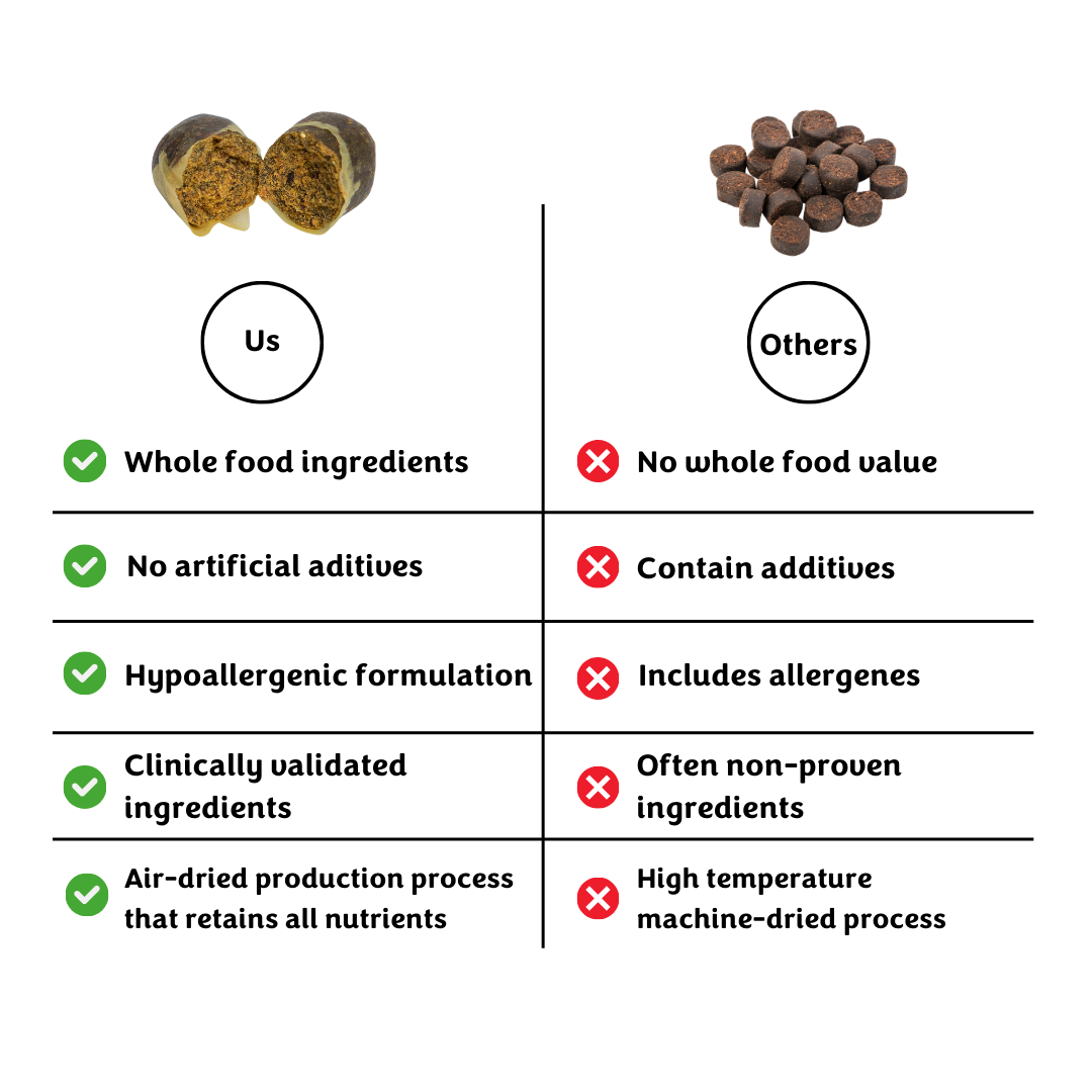 Gut Health Restoration: Our 10 billion CFU probiotics (including German Biosprint® and Japanese Calsporin®) rebalance your dog's gut microbiome. Since 70% of the immune system lives in the gut, fixing gut problems often stops skin problems at their source.